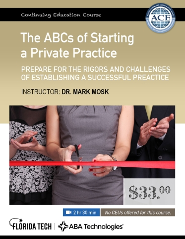 Opening up a private practice can be stressful and the how-to’s are not exactly stated in a manual. In this course, join Dr. Mosk as he prepares practitioners for the rigors and challenges of establishing a successful private practice. Furthermore, he introduces the core elements of starting an ABA private practice, including the necessary steps in planning, basic administrative issues inherent in running a professional practice, budgeting and financial management, and tactics for marketing the practice. Lastly, Dr. Mosk discusses strategies for growth.