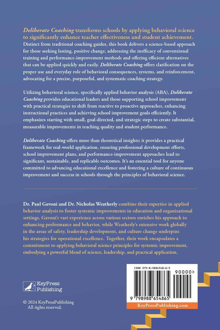Deliberate Coaching applies the science of behavior to improve teacher effectiveness and student outcomes. Unlike traditional coaching guides, it offers a practical, science-based approach with clear strategies for using consequences, systems, and reinforcement to create lasting change.