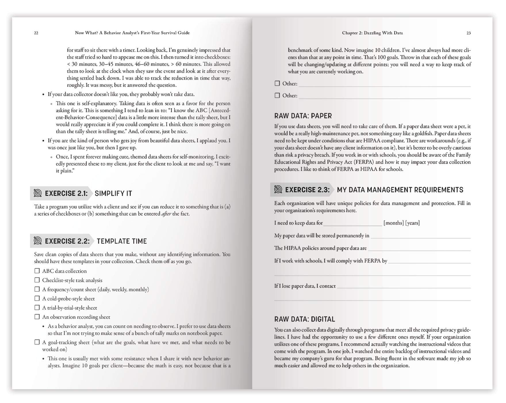 This book is exactly what I would have wanted as a brand new analyst. In my first year of practice I had to learn many things by myself including how to give and receive feedback and how to navigate the world of education. The book is filled with funny anecdotes that I can relate to which makes it so much more enjoyable to read. I also really like the worksheets and the explanations for problem solving that are given. This book is a perfect example of what is missing in the education of behavior analysts and I will be recommending it to all aspiring analysts going forward.