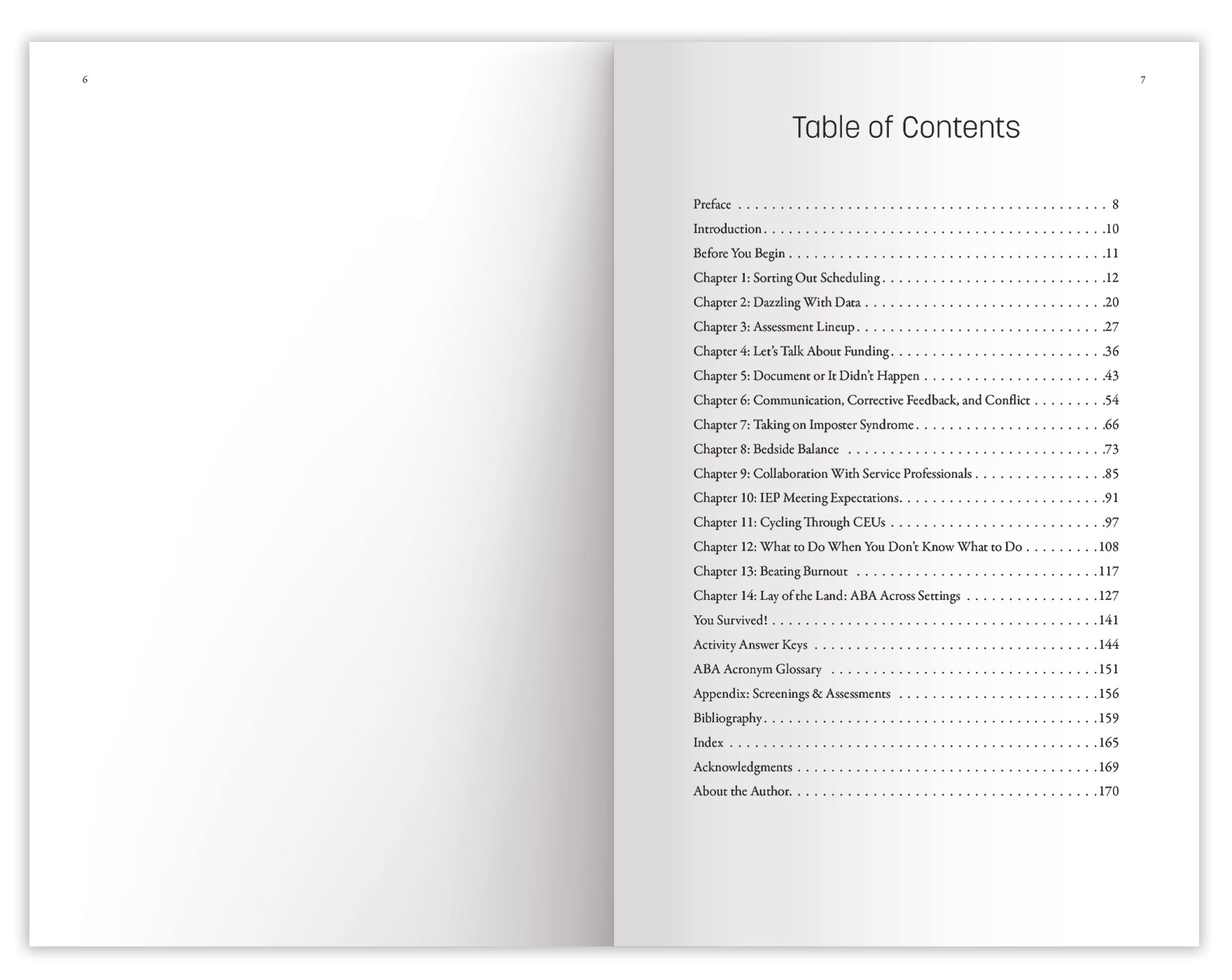 The book is organized into fourteen chapters, each addressing different aspects of the ABA profession. From scheduling and data management to communication skills and addressing burnout, the text covers a wide range of topics essential for success in this field. Each chapter is structured logically and includes fun, thought provoking, and engaging activities, making it easy for readers to follow and apply the concepts discussed. Additionally, the inclusion of examples, such as methods for data collection, treatment plans, and strategies for resolving conflicts, enhances the book’s practical utility.