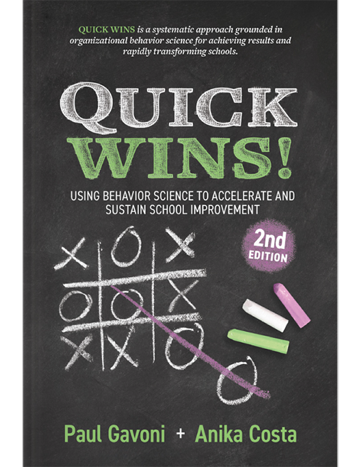 Grounded in Organizational Behavior Management (OBM), or the science of human behavior for making a positive difference in any school or organization, the book’s goal is to be a school leader’s “grab and go” resource for building momentum for change. Though it is written from the perspective of a school leader, you don’t have to be a school leader to leverage the power of Quick Wins. Whether you are a school district official, principal, assistant principal, dean, guidance counselor, behavior analyst, or a school consultant, or you hold any administrative position where you engage people to implement change, this book is intended for you.
