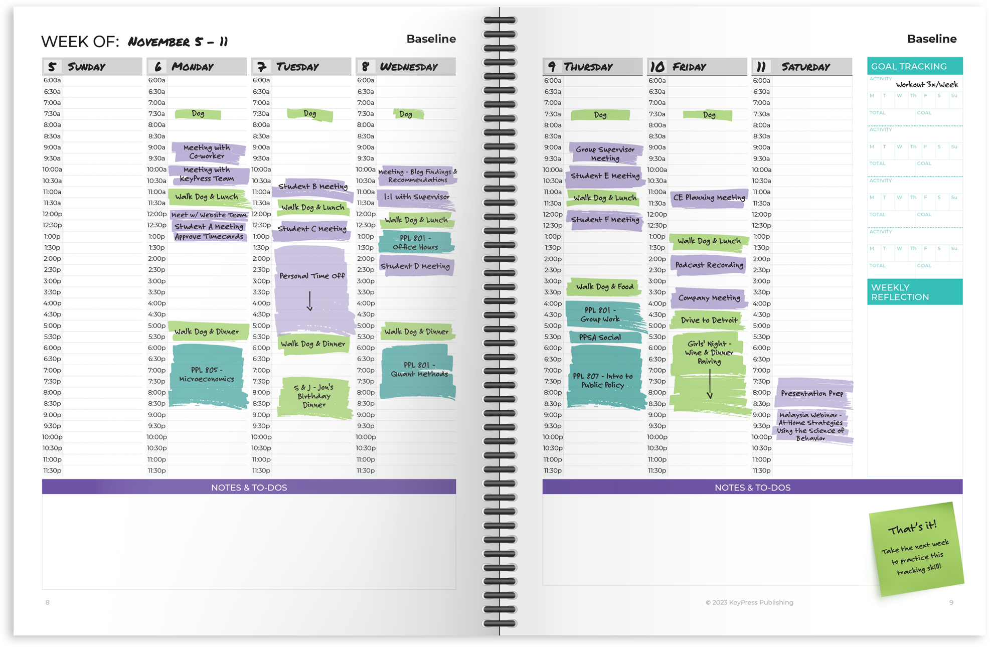 Self- and time-management aren’t about being the most productive person. They’re not about comparing yourself to others. Self- and time-management are about discovering your values and priorities and ensuring you can make time for yourself, your family and friends, outside of work and school. They’re about setting personal and attainable goals while using data to change your behavior.