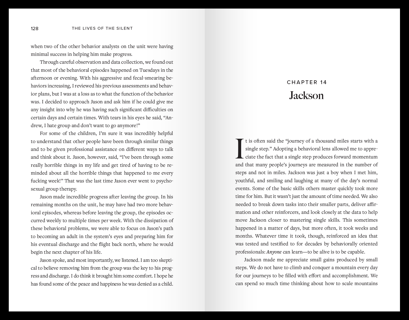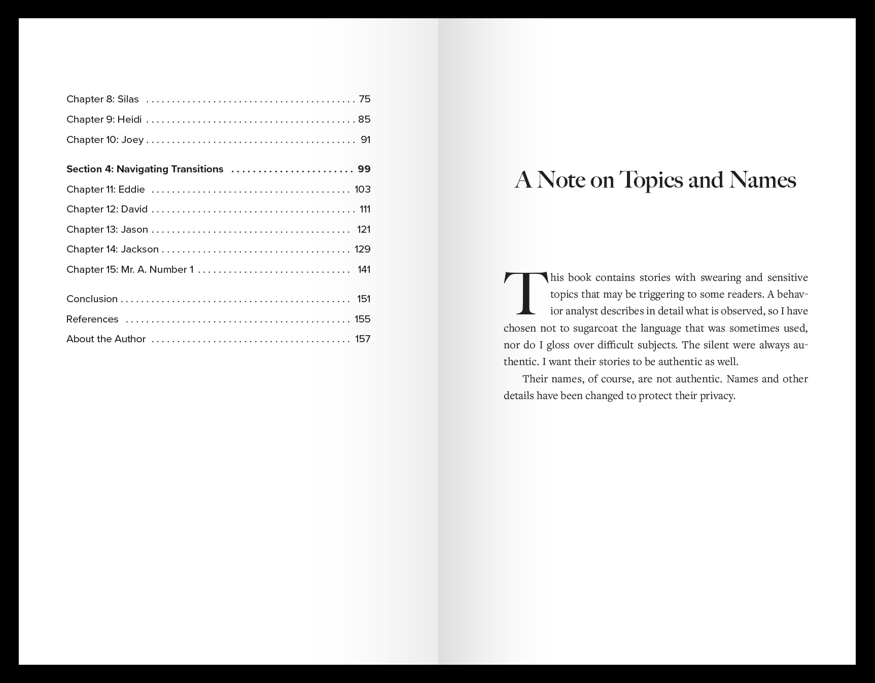 A Note on Topics: This book contains stories with swearing and sensitive topics that may be triggering to some readers. A behavior analyst describes in detail what is observed, so I have chosen not to sugarcoat the language that was sometimes used, nor do I gloss over difficult subjects. The silent were always authentic. I want their stories to be authentic as well.