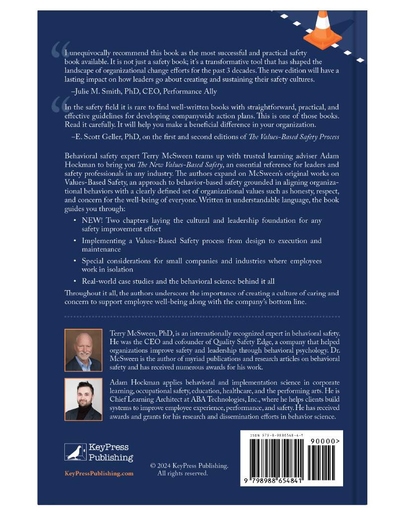 Behavioral safety expert, Terry McSween, teams up with trusted learning adviser, Adam Hockman, to bring you The New Values-Based Safety, an essential reference for leaders and safety professionals in any industry. The authors expand on McSween’s original works on Values-Based Safety, an approach to behavior-based safety grounded in aligning organizational behaviors with a clearly defined set of organizational values such as honesty, respect, and concern for the well-being of everyone.