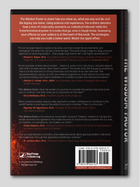 We all want to act wisely and kind, but too often the person who “shows up” in our actions harms others. Lattal and Zuluaga describe a life-long journey by which each of us can contribute to a better, more just world. A continual process of self-knowledge and learning, the journey involves analyzing the environmental conditions maintaining our current behavior, making our values concrete, changing our environment to support behaviors consistent with our values, observing and measuring if what we do matches our good intentions, and celebrating our accomplishments and progress. If B. F. Skinner and Ben Franklin collaborated on a plan for self-improvement, it might read a lot like The Wisdom Factor.