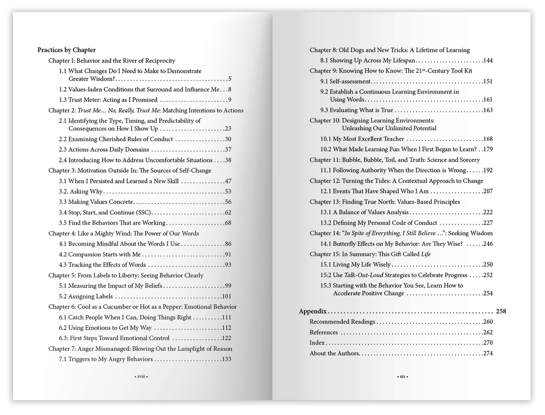 The authors offer a wide-ranging, guided tour through quotations and comments by a large and diverse roster of prominent figures, as well as by dozens of prominent behavioral scientists and psychologists to address such behavior-related concepts as motivation, learning, beliefs, heuristics, compassion, words and language, knowledge, reciprocity, emotions, self-control, experience, collaboration, competency, thinking skills, problem-solving, flexibility, objectivity, values, goals, and of course, wisdom. The authors’ behaviorally informed values and ethics glisten throughout their science-based behaviorally informed guidance.