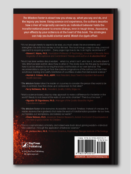 We all want to act wisely and kind, but too often the person who “shows up” in our actions harms others. Lattal and Zuluaga describe a life-long journey by which each of us can contribute to a better, more just world. A continual process of self-knowledge and learning, the journey involves analyzing the environmental conditions maintaining our current behavior, making our values concrete, changing our environment to support behaviors consistent with our values, observing and measuring if what we do matches our good intentions, and celebrating our accomplishments and progress. If B. F. Skinner and Ben Franklin collaborated on a plan for self-improvement, it might read a lot like The Wisdom Factor.