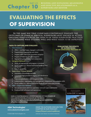 In the same way that clinicians continually evaluate the outcomes of clinical services, supervisors must engage in active, ongoing evaluation of the effects of their supervisory practices to determine what is going well and what needs to be improved.